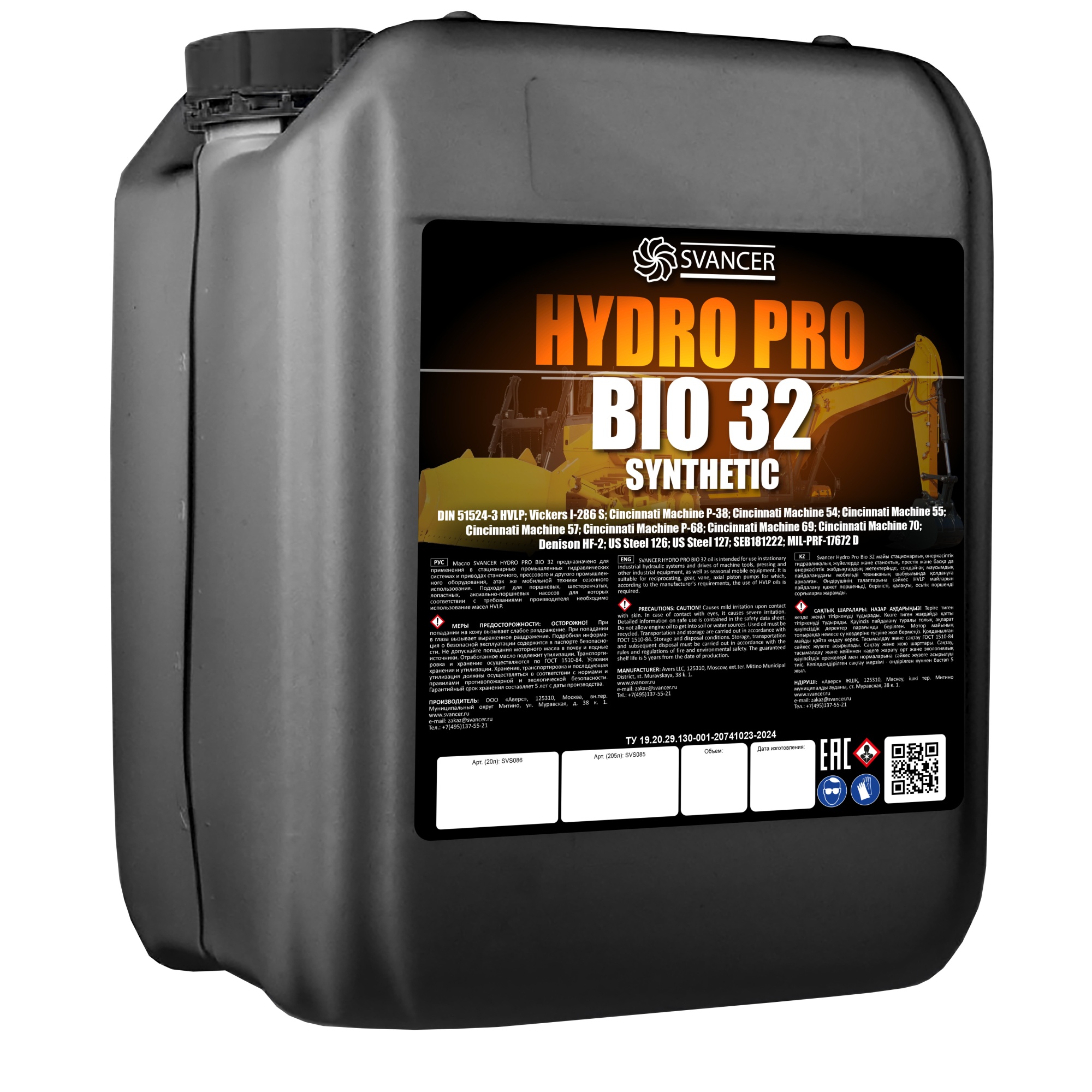 SVANCER HYDRO PRO BIO 32 - высокоэффективное гидравлическое масло, производимое на основе высококачественных синтетических базовых масел и многофункционального пакета присадок, обеспечивающего защиту от износа и повышения ресурса оборудования.