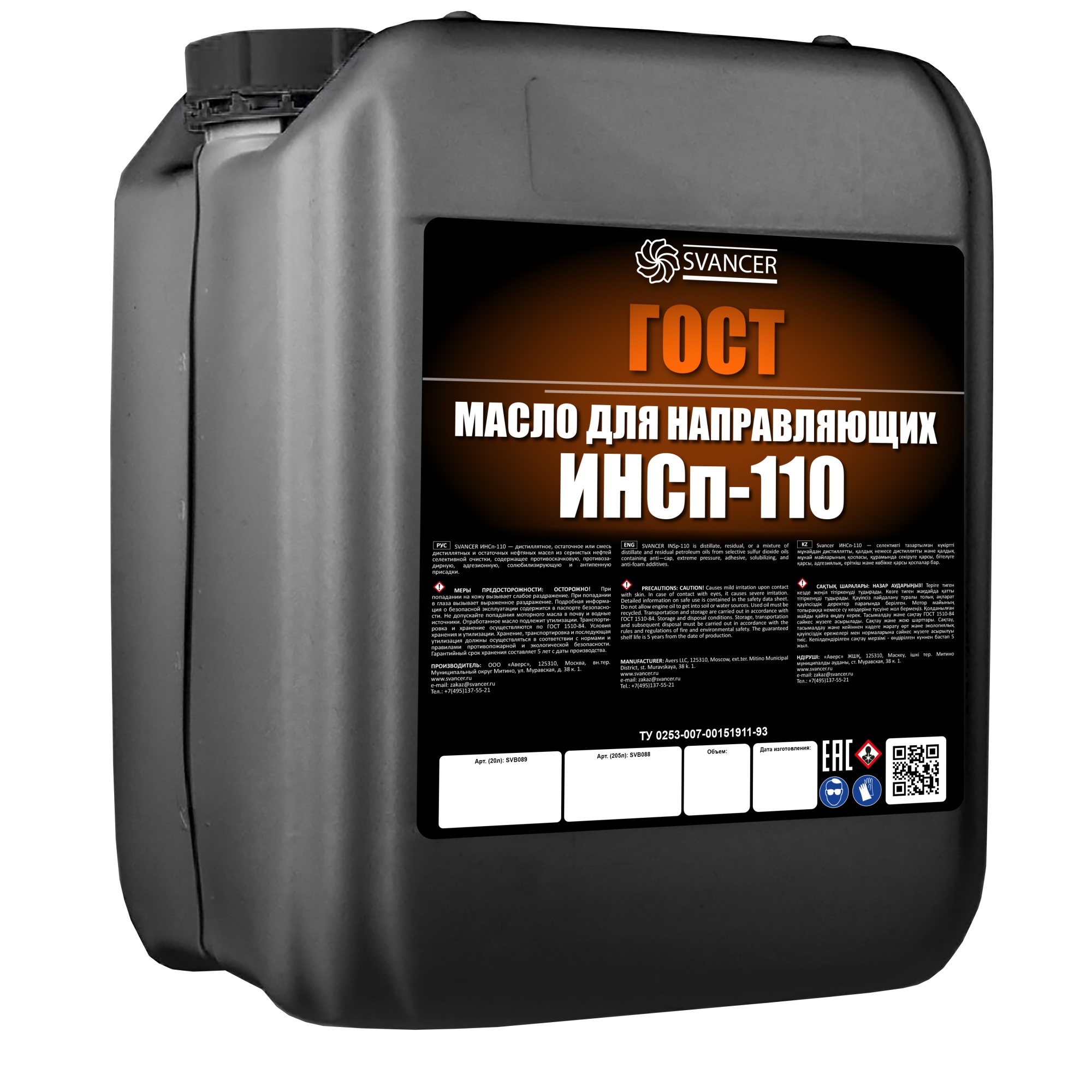 SVANCER ИНСп-110 - дистиллятное, остаточное или смесь дистиллятных и остаточных нефтяных масел из сернистых нефтей селективной очистки, содержащее противоскачковую, противозадирную, адгезионную, солюбилизирующую и антипенную присадки.