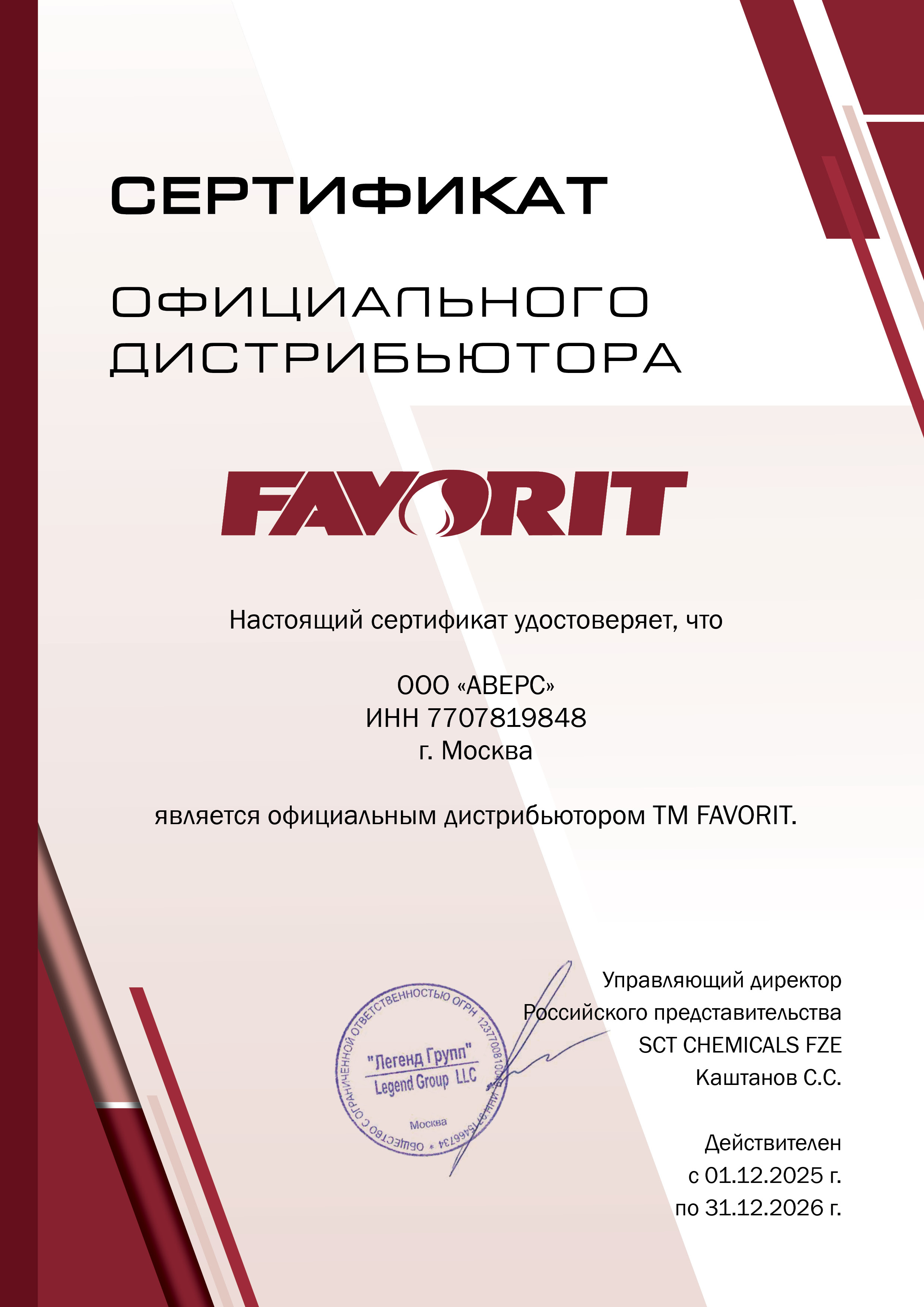 Торговая марка FAVORIT представлена более чем в 30 странах мира, ее ассортимент включает полный комплекс высококачественных смазочных материалов: моторные, трансмиссионные и гидравлические масла, пластичные смазки, а также охлаждающие жидкости. Продукция бренда реализуется во всех сегментах автомобильного рынка – крупные специализированные магазины и рынки, сервисные станции, пункты замены масел, сети гипермаркетов.